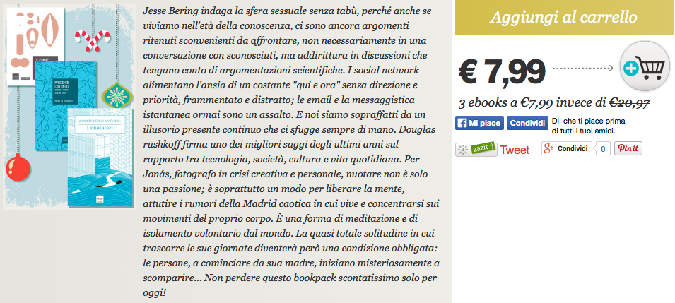 Nel caso non l’aveste ancora visto (e questo significa che non siete iscritti alla newsletter di Bookrepublic: male!), oggi c’è un super BOOKPACK di Natale: con 7,99 euro -anziché 20,97- vi portate a casa tre nostri titoli in ebook. Fossimo in voi, non ce lo faremmo ripetere due volte! Auguri e buone letture!