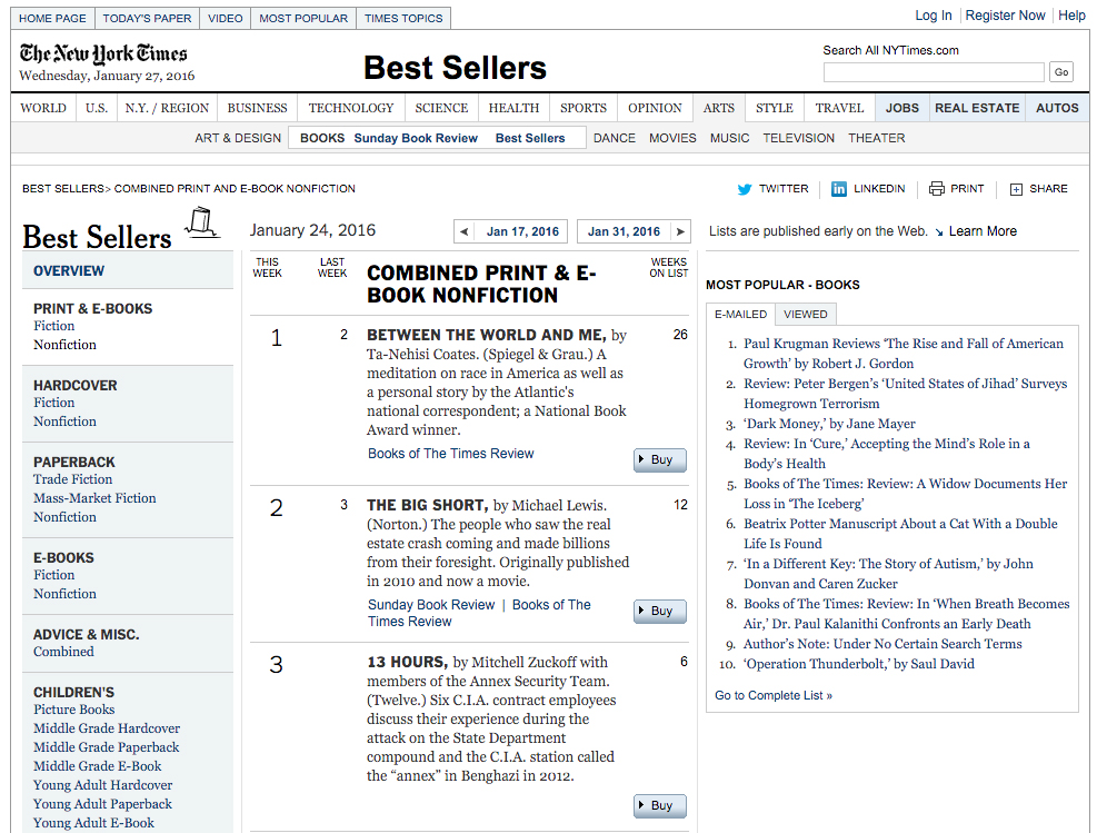 “Between The World and Me” al primo posto nella classifica del NYT (clicca sulla foto per ingrandirla)